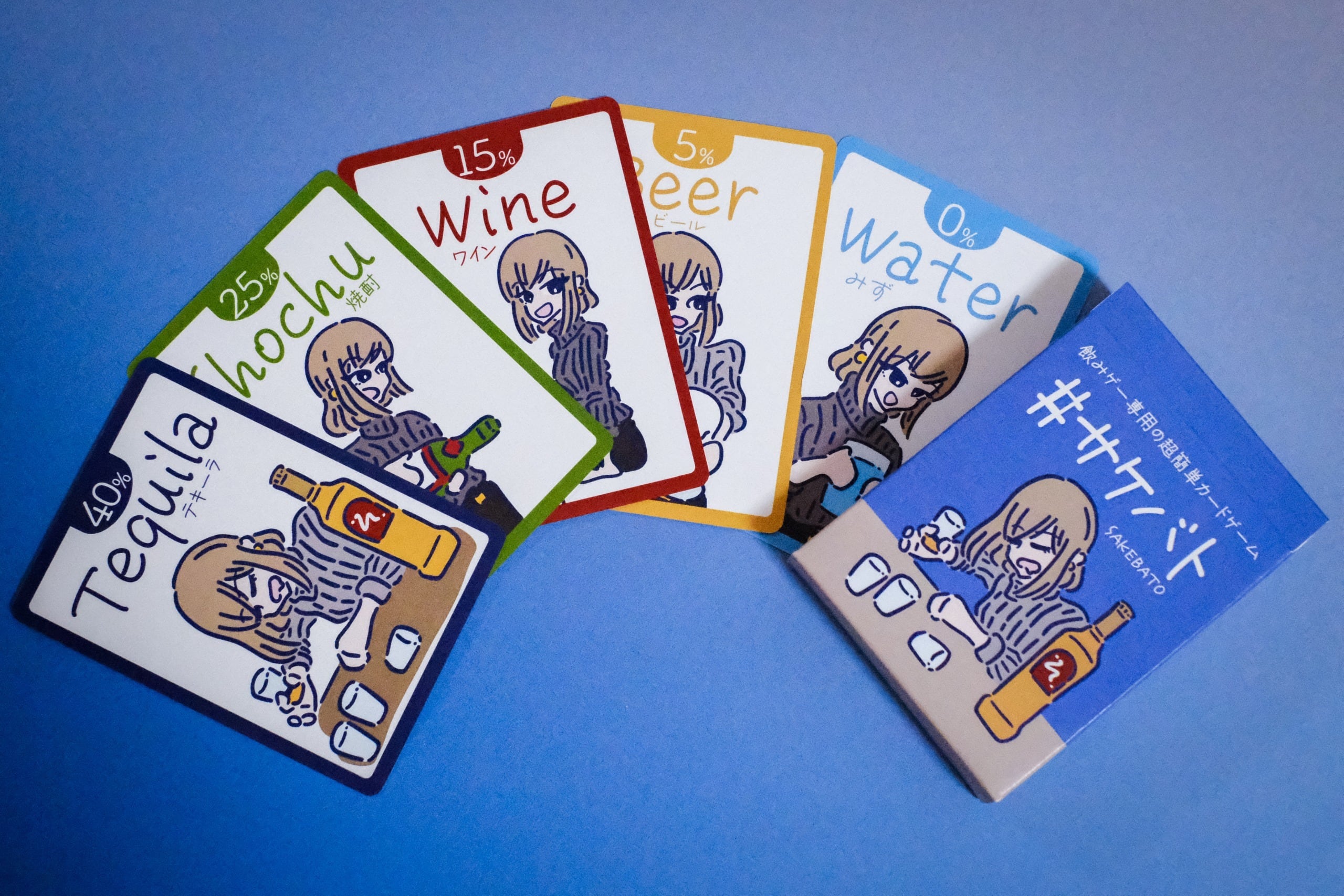 #サケバト は、「負けたら一杯!?飲みの席で手軽に遊べる」がコンセプトの超簡単カードゲームです。